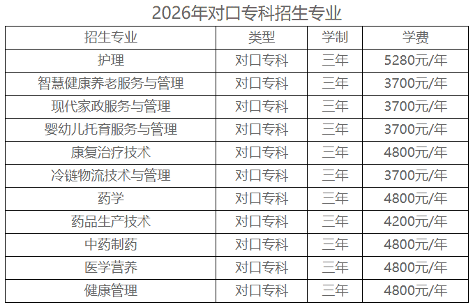 2026年学费:护理专业5280元/生/年;其他医学类专业4800元/生/年;文科类各专业3700元/生/年;理工类各专业4200元/生/年。